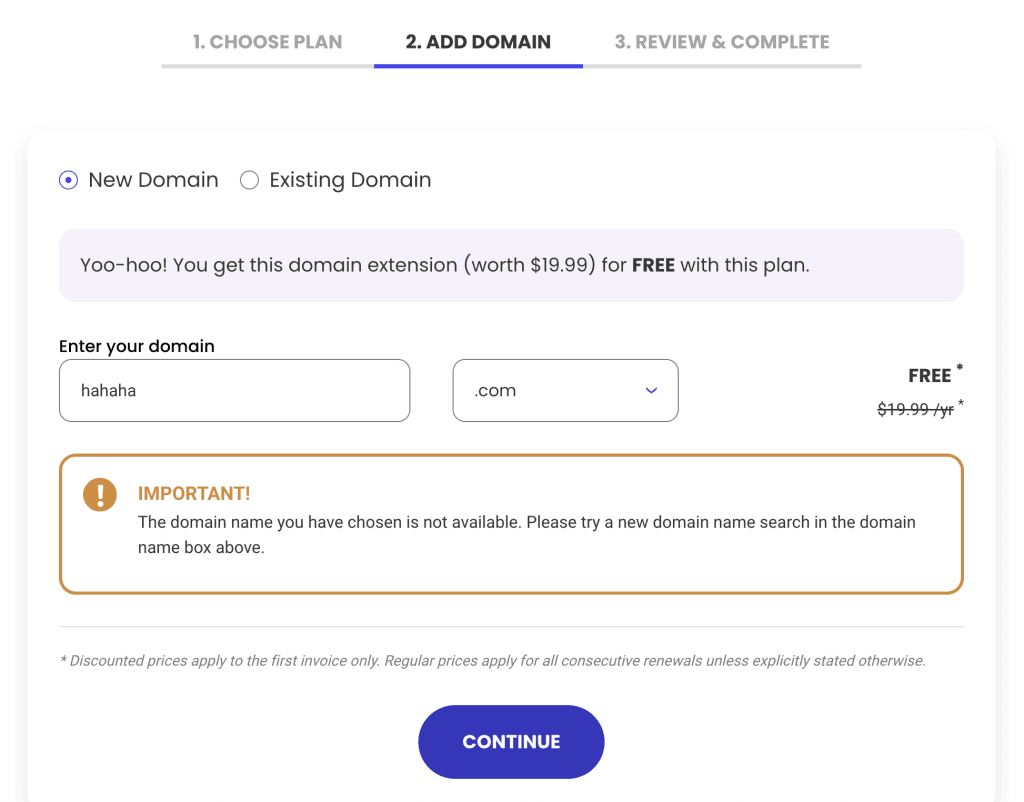输入你想要的域名,点击”Continue”即可。